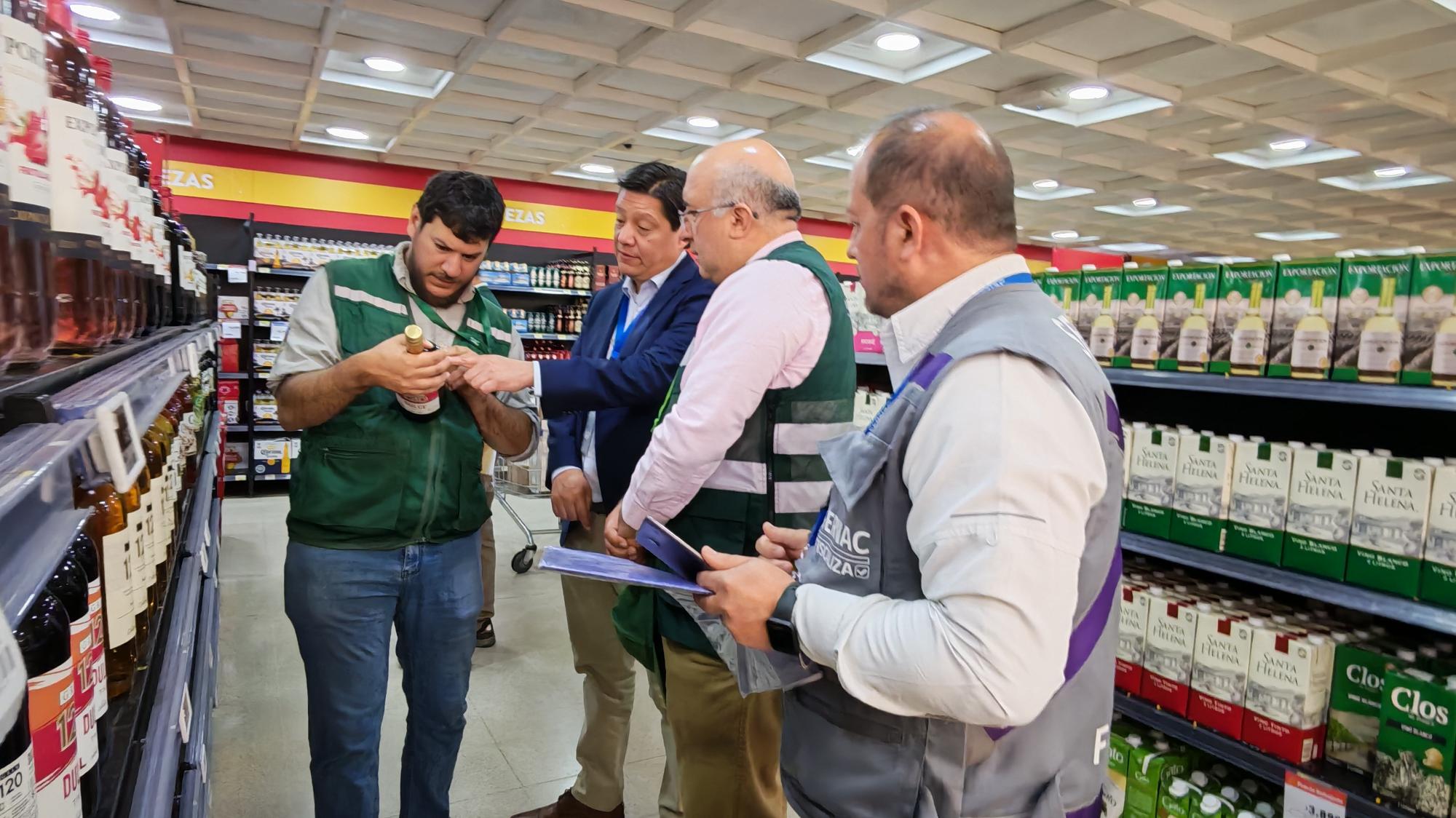 Durante la inspección, los equipos técnicos revisaron el rotulado, la graduación alcohólica, la denominación del producto y su correcta exhibición, así como la información de precios y promociones disponibles para los clientes.