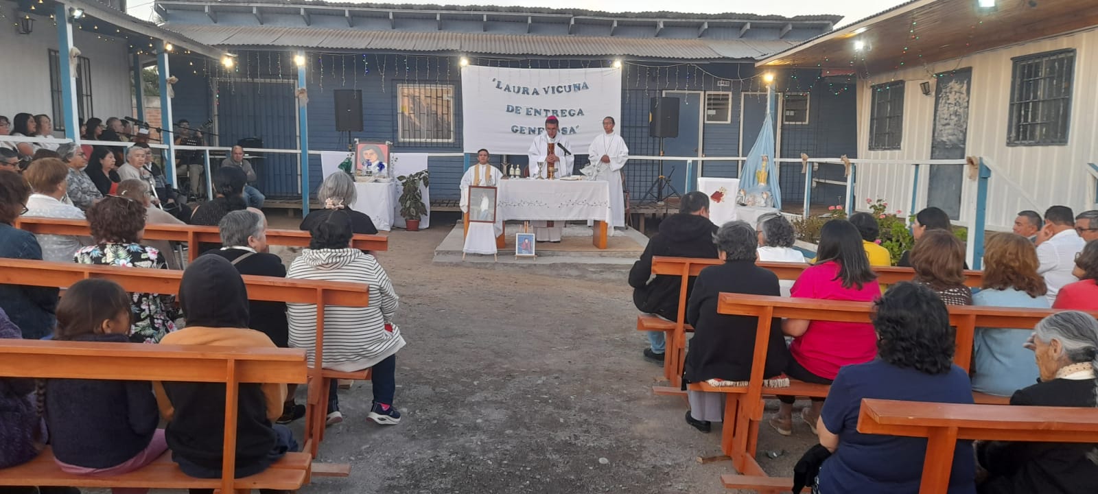 Finalmente, monseñor Andrés Ferrada fue invitado a bendecir la campana donada el año pasado e instalada junto a la capilla, a un costado de la imagen de la beata Laura Vicuña, cerrando una jornada marcada por la fe, la esperanza y el compromiso solidario.