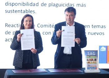 El ministro de Agricultura, Esteban Valenzuela, junto a la directora nacional (s) del Servicio Agrícola y Ganadero -SAG-, Andrea Collao,...